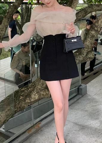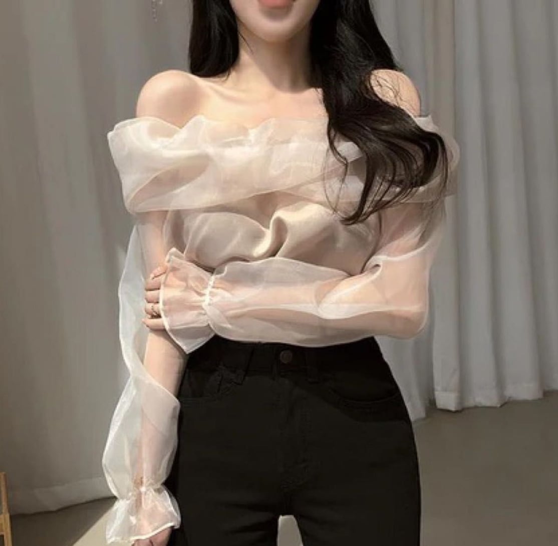 韓国♡超セクシー♪オフショルダー シースルートップス レディース エレガントシフォンブラウス 長袖 2色
