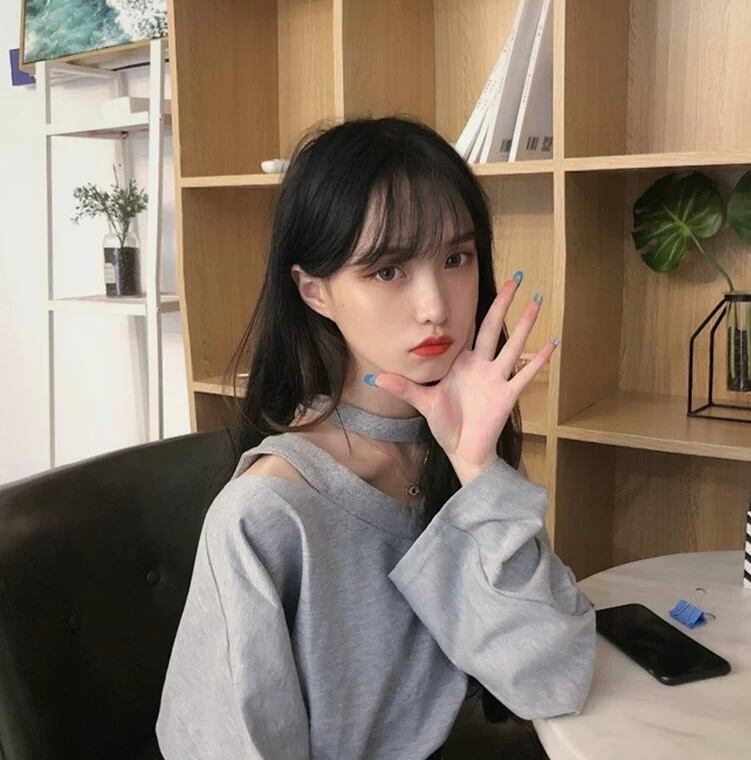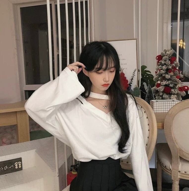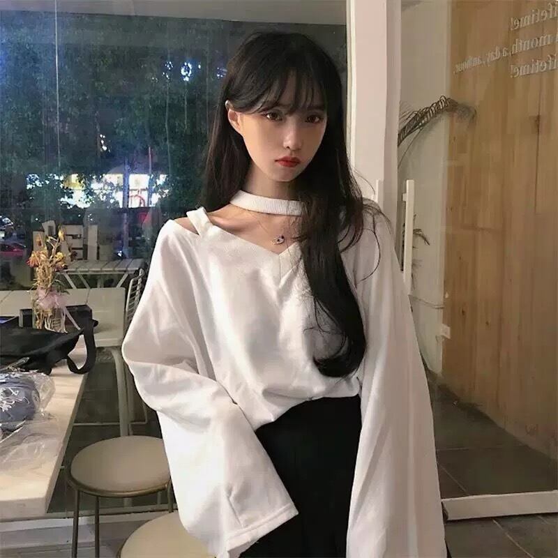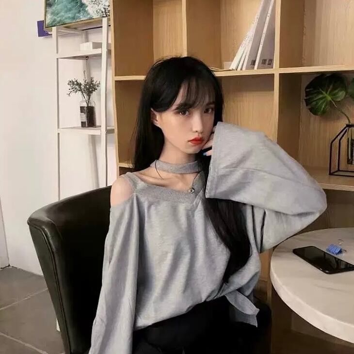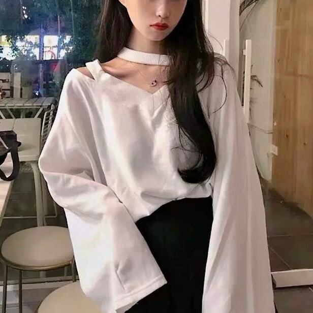 肩見せ♡カットソーオフショルダー チョーカーネックブラウス長袖シャツトップスシンプル 無地 3色