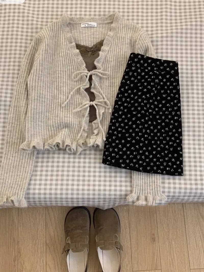 韓国ファッション トレンド カジュアル 秋コーデ 冬コーデ 秋冬コーデ セクシー 大人可愛い おしゃれ ファッション通販 韓国スタイル襟ニットソフトワックスセーターハイエンドニッチカーディガンジャケットフレンチガーリーフリル暖かいハートボタン長袖