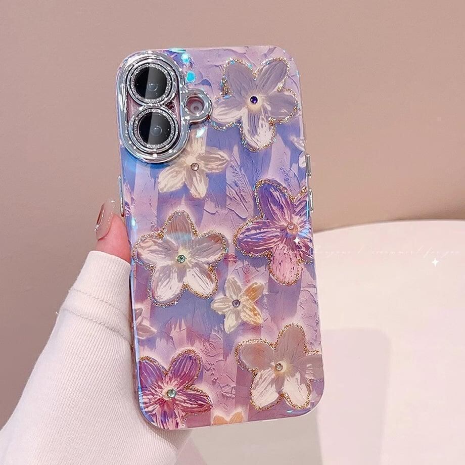 【即納商品】韓国♡お花にうっとり一目惚れ キラキラレンズ油絵風 フラワー iPhone13pro maxケース