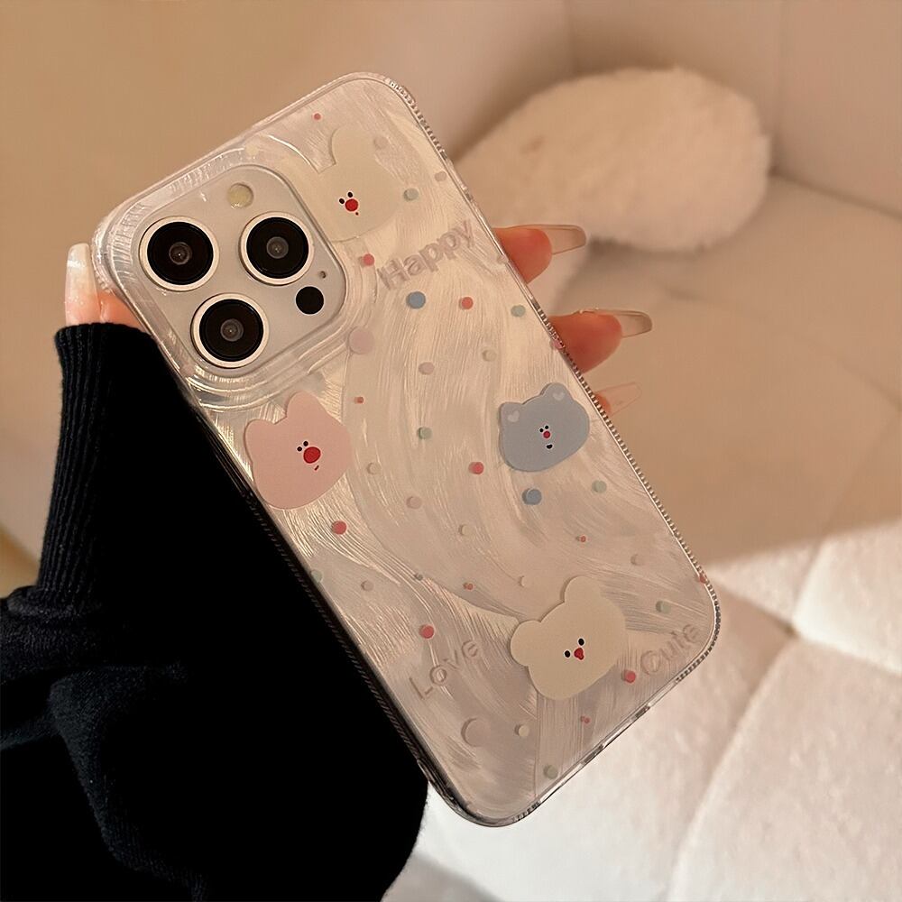 韓国♡キラキラ水紋 カラフルなくまちゃん 水玉 iphoneケース カバー 可愛い 送料無料