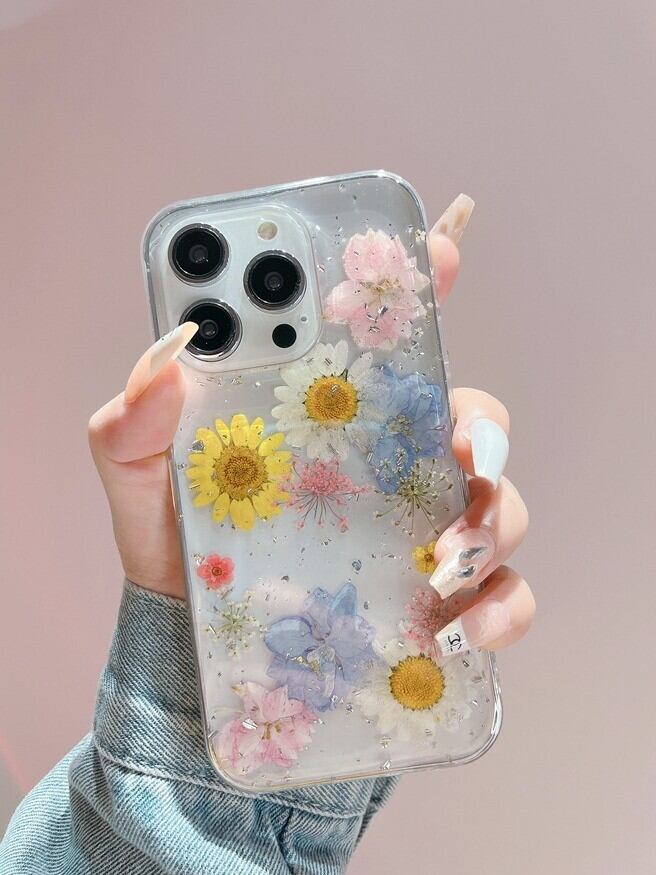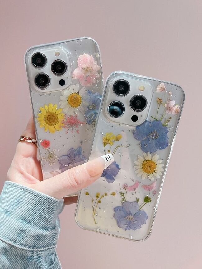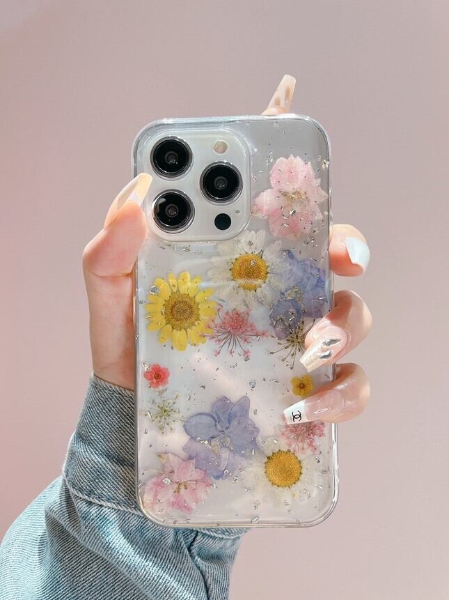 華やかな韓国デザインの押し花ケースが登場!お花のモチーフがかわいらしさ満点で、見るたびに心が弾むこと間違いなしです♡クリア半透明の素材が、スマホの美しさを引き立て、どんなコーディネートにもぴったりフィットします。おしゃれでありながらも、日常使いに最適な軽やかさを持ち、カジュアルからフォーマルまで幅広く活躍します♪