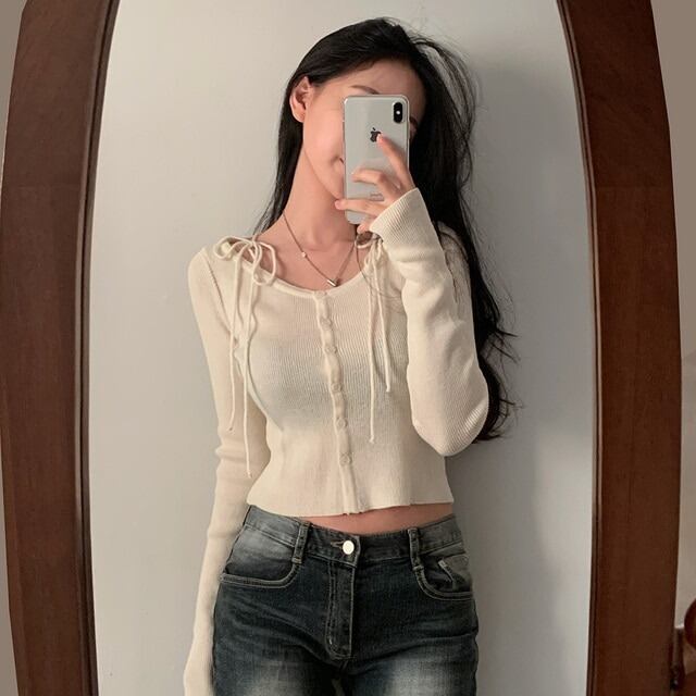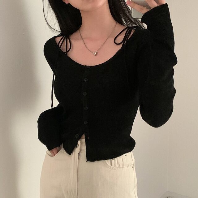 韓国ファッション トレンド カジュアル 秋コーデ 冬コーデ 秋冬コーデ セクシー 大人可愛い おしゃれ ファッション通販 レディース洋服 長袖モデルショルダーリボンカーディガン肩リボンシュリンボタン長袖Tシャツブラウスカーディガンラウンドネックレースアップボウカーディガンシングルブレスト長袖アウター シックカーディガン ロング リボン ネックカーディガンきれいめ大人可愛いセクシー大人コーデ秋コーデ