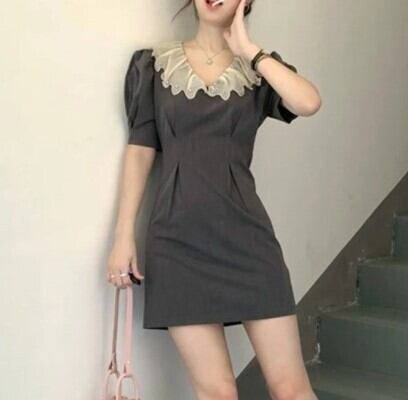 韓国♡可愛いパフスリーブ ミニワンピース 襟付きエレガント マーメイド レース 丸襟 シンプル