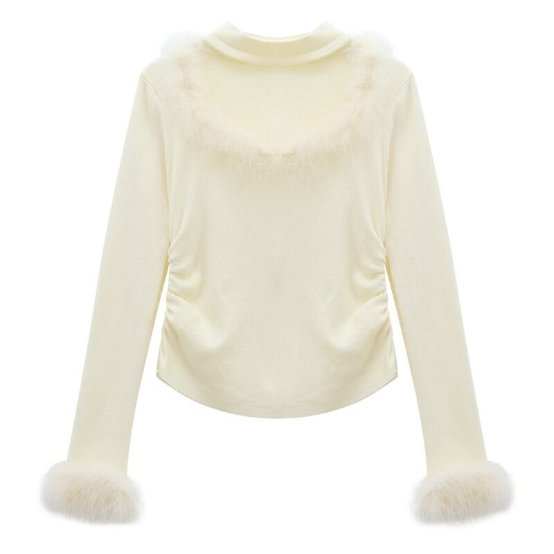 大人可愛い♡ファー付きリブ編みふわふわトップス 長袖秋冬 チョーカー きれいめ 2色