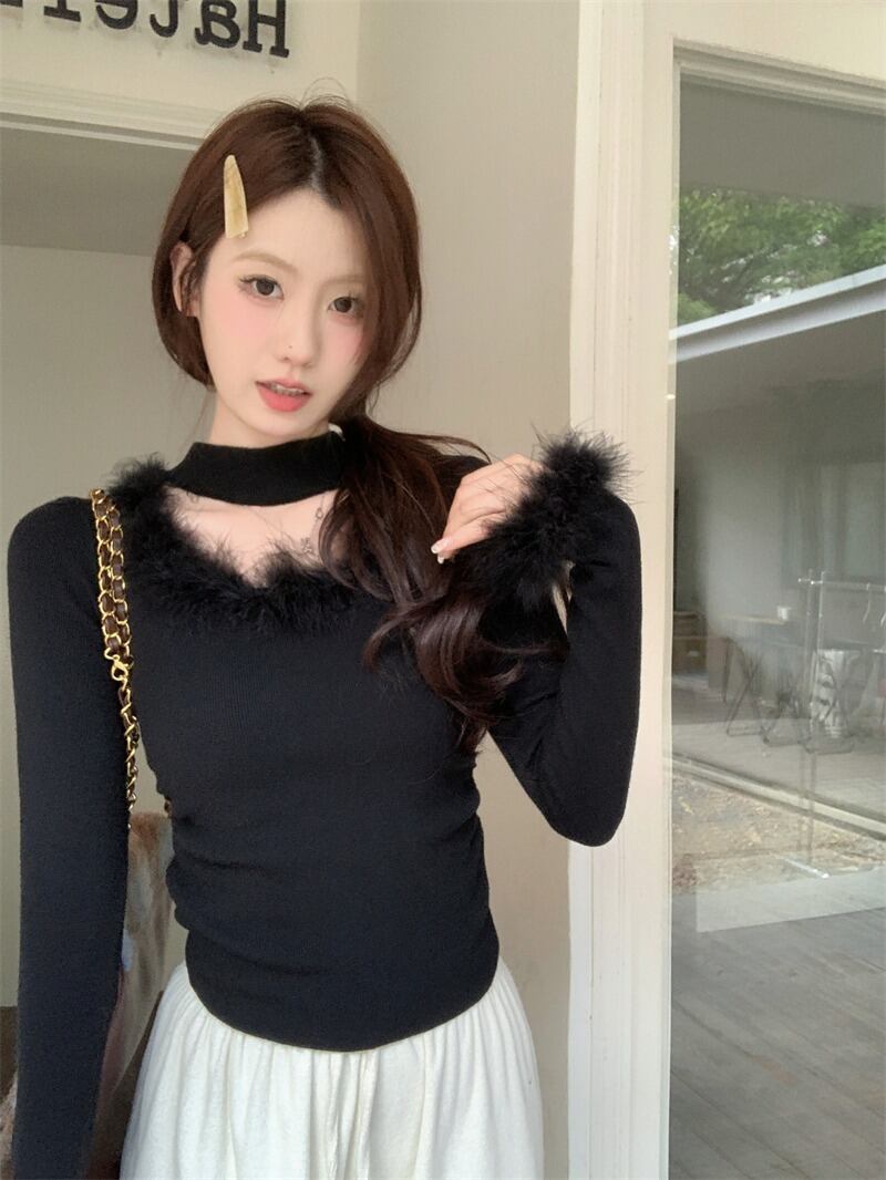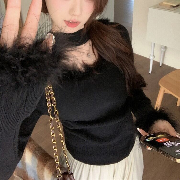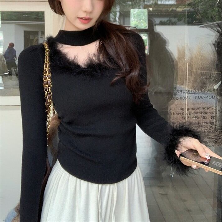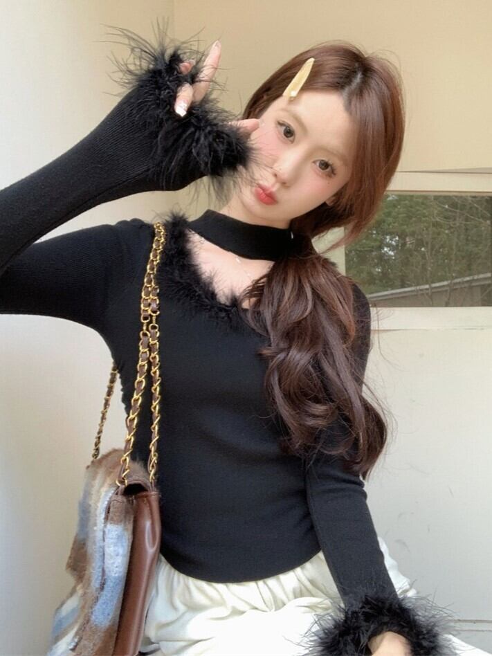 韓国ファッション トレンド カジュアル 秋コーデ 冬コーデ 秋冬コーデ セクシー 大人可愛い おしゃれ ファッション通販 レディース洋服 長袖カットソーUネックセーターセクシーニット色気洋服レーディス服ファー付きリブ編み肩見せトップスVネックファートップス 2色 Vネック ファー トップス 上品 優雅 エレガント レディースおしゃれ ファッションデコルテキュートかわいい 着瘦せ シャギー ニット 小顔 トップス セーター レディース もこもこ 春 ふわふわ きれいめ 暖かい 長袖 秋冬 華奢見せ 無地 インナー 春コーデ 可愛い 大きいサイズ スクエアネックチョーカーデザインフェイクファーニットベーシックニット秋冬春 新作 ふわふわ 可愛らしい ニット アンダーウェア ショット丈 トップス セクシー