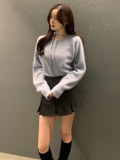 このニットトップスは、女性らしさを引き立てるネックリボンが特徴で、カジュアルながらも上品な印象を与えるアイテムです♡