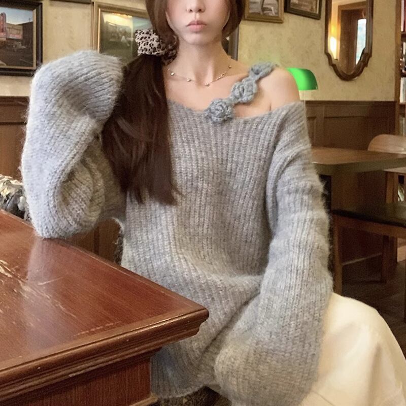 これからの季節にぴったりな、韓国風のフラワーオフショルダーニットトップスセーターが登場です♡ 長袖で、肌触りも良く、オシャレを楽しむあなたにおすすめの一枚です♡
