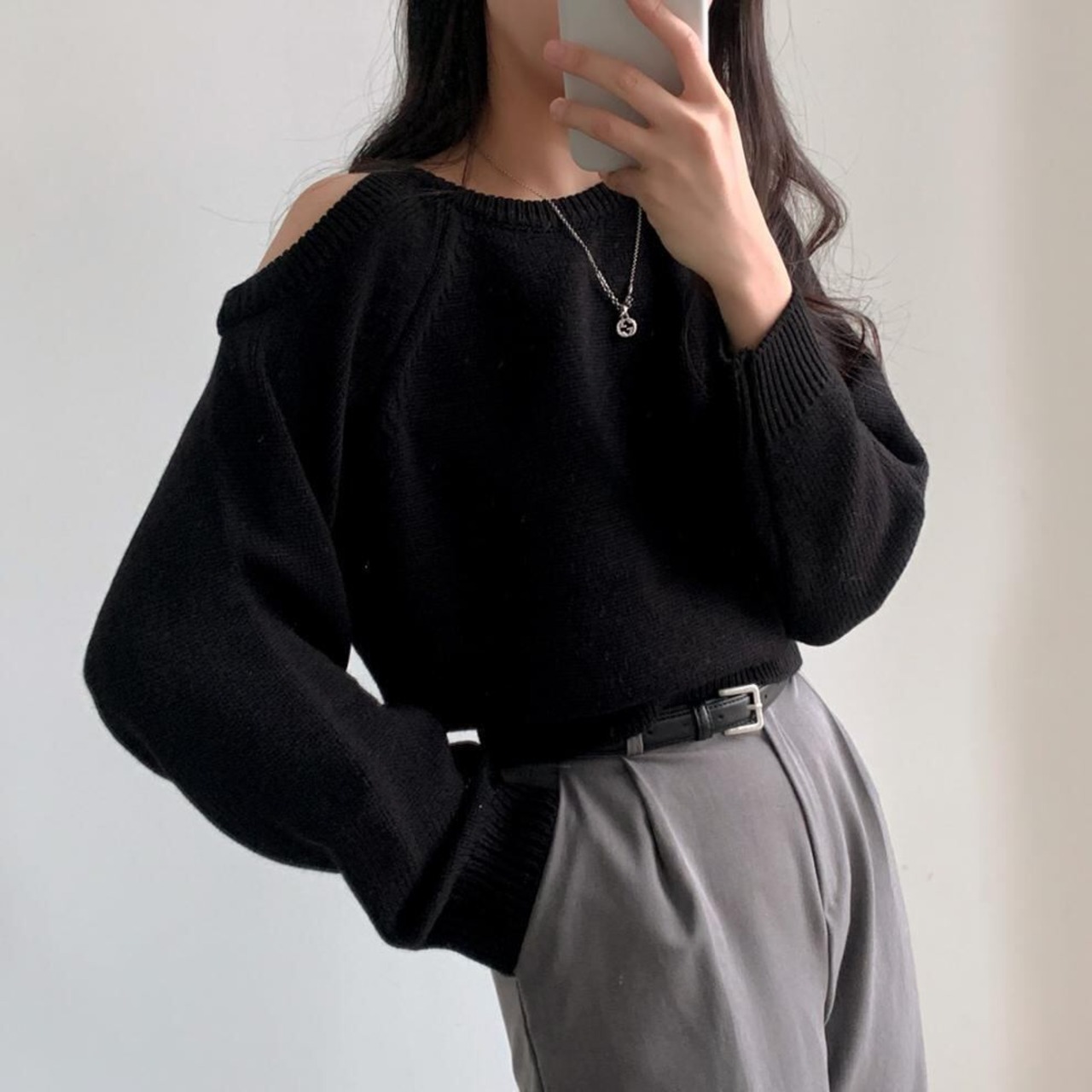 韓国♡オフショルダーニットトップスセーターシンプル長袖カジュアル2色