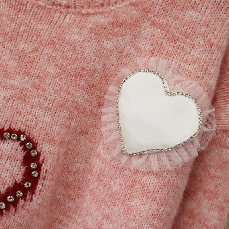 韓国♡カジュアルハートレースビジューニットトップスセーター学生通勤通学 3色