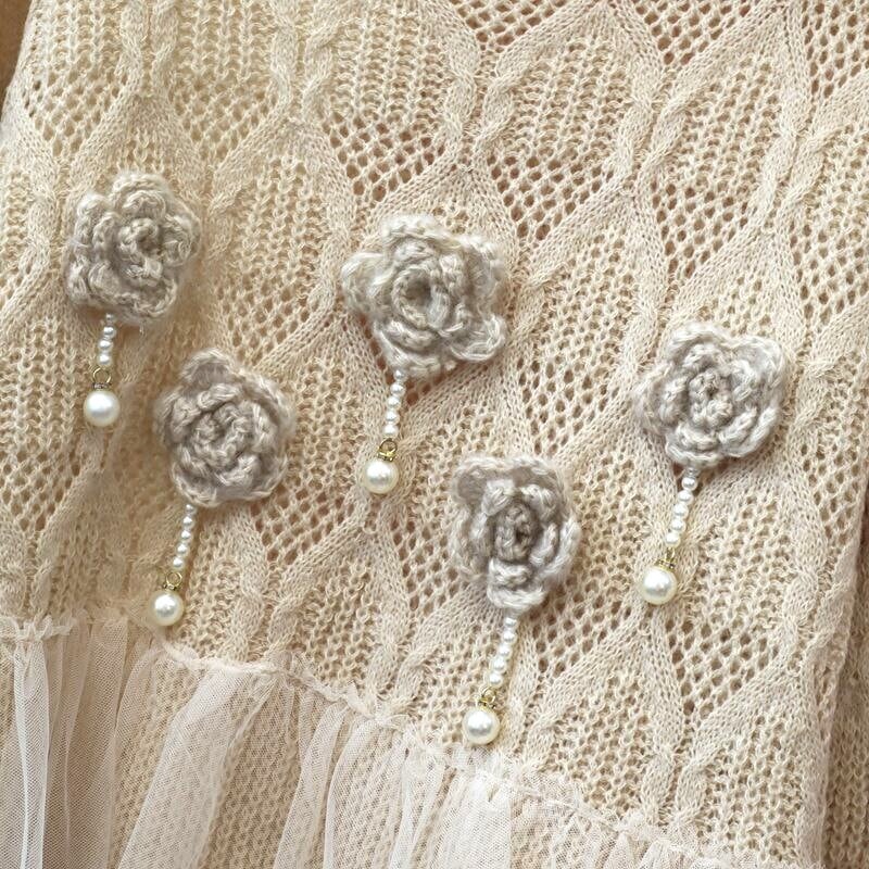 韓国♡立体フラワーシースルーレースニットトップスセーターおしゃれパールピンク長袖2色